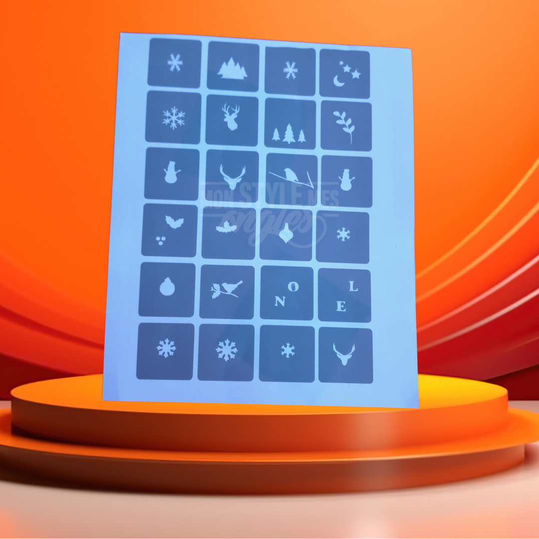 Avec ses motifs uniques (flocons, sapins, rennes, lune, montagnes, feuillage…), ce stencil vous permet de créer un nail art propre, net et sans bavure en quelques secondes.